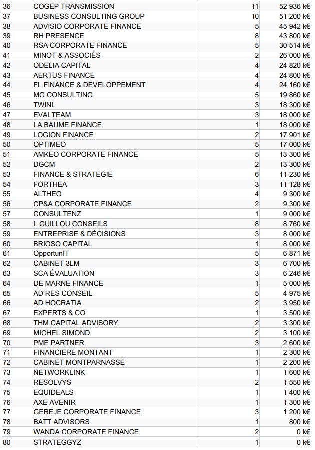 Ce classement, publié le 9 février 2023, reprend une partie de nos 22 deals conseillés au cours de l’année 2022 (12 acquisitions, 7 cessions et 3 levées de fonds).